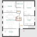Celui-ci est composé d'un double séjour, une cuisine équipée séparée, 3 chambres à coucher, une salle d'eau avec douche et WC et un WC séparé.