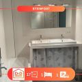 - Grande salle de bain partagée avec seulement un autre colocataire : douche à l'italienne, baignoire, WC, évier et armoires privatives.
